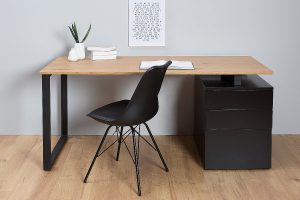 Štýlový písací stôl Zayden v sebe kombinuje jednoduchosť a funkčnosť. Vytvára dokonalú harmonickú kombináciu medzi pracovnou doskou prvotriednej kvality v dubovom dekore a čiernym nosným rámom. Pracovná doska je dokonale rovná a hladká, vďaka čomu poskytuje vysoký komfort pri práci. Súčasťou stola je aj praktický zásuvkový kontajner. Obsahuje 2 plytké a 1 hlbokú zásvku.