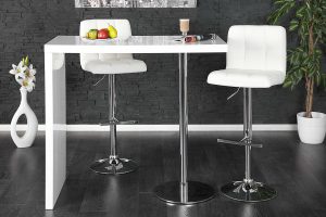 Exkluzívny barový stôl vo vysokom lesku v bielej farbe. Urobte dojem na svojich priateľov na Vašej ďalšej párty! Barový stolík dokonale zapadne do obývacej miestnosti alebo jedálne ale je tiež ideálny na terasu alebo balkón. Povrch stola je vo vysokom lesku, noha je chrómovaná.