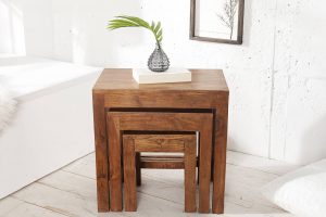 Exkluzívne a štýlové stolíky zostavené v jednom v sete. Drevené stolíky Freddo sú obzvlášť stabilné, pretože agátový strom z ktorého sú vyrobené rastie v kolísavých teplotách a za silných zrážok. Tieto 3 stolíky je možné umiestniť samovoľne, vedľa seba alebo v rôznych polohách – vašej fantázii sa medze nekladú. Prirodzenosť stolíkov sa plynulo spája s puristickým dizajnom a poskytuje nedotknutú a čistú atmosféru. Tieto luxusné stolíky budú odrážať Vašu lásku k prírode v podobe krásneho umeleckého diela vo Vašej domácnosti. Vy a vaši priatelia budete nadšení atmosférou, ktorú vytvoríte vďaka nábytku kolekcie Freddo!